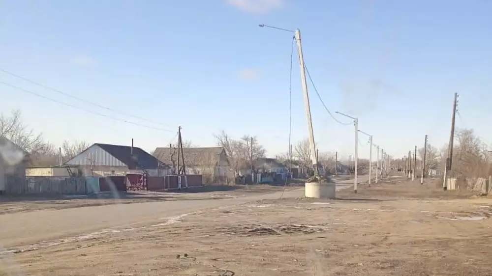 "Өткенде ғана салып кеткен электр бағандары міне құлап жатыр. Осыдан үш ай бұрын ғана орнатылған. Міне, өтіп бара жатқанда құлады. Машинаны сындыра жаздады. Мынаның субмердігерлері қайда? Мына жерде сым үзіліп жатыр. Енді кімге жалынатымызды білмейміз. Міне бір сағат болды дабыл қағып жатырмыз. Анаған-мынаған телефон шалып жатырмыз. Міне қараңыз! Жерде сымдар жатыр. Қазір бір адамдар өтсе адамдар тоққа соғылады ғой. Мынаның бәрін көтеру керек. Мынау не болдық өзі?! Мына бағандардың бәрі өтірік шалағайлықпен салынған. Жай тастарды балшыққа тыға салған. Ол балшық босап бағандар құлады. Әкім де, учаскелік инспекторлар да болмады. Мұнда лента тағып қою керек қой. Әлден құлап жатыр ертең қатты боран болғанда не болмақ", - дейді ауыл тұрғыны Рамазан Сейтжапаров.