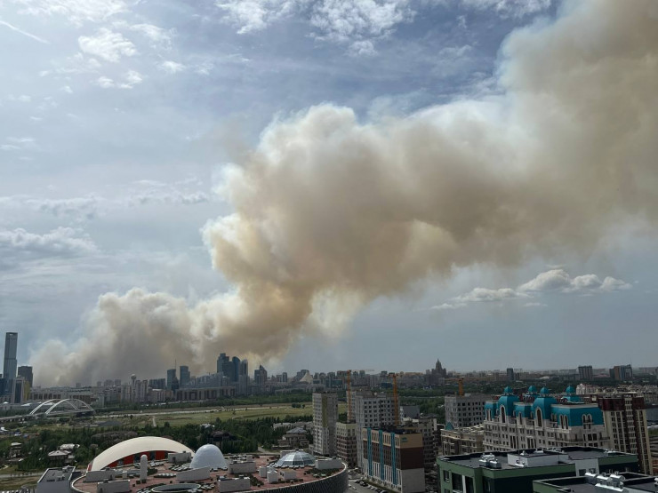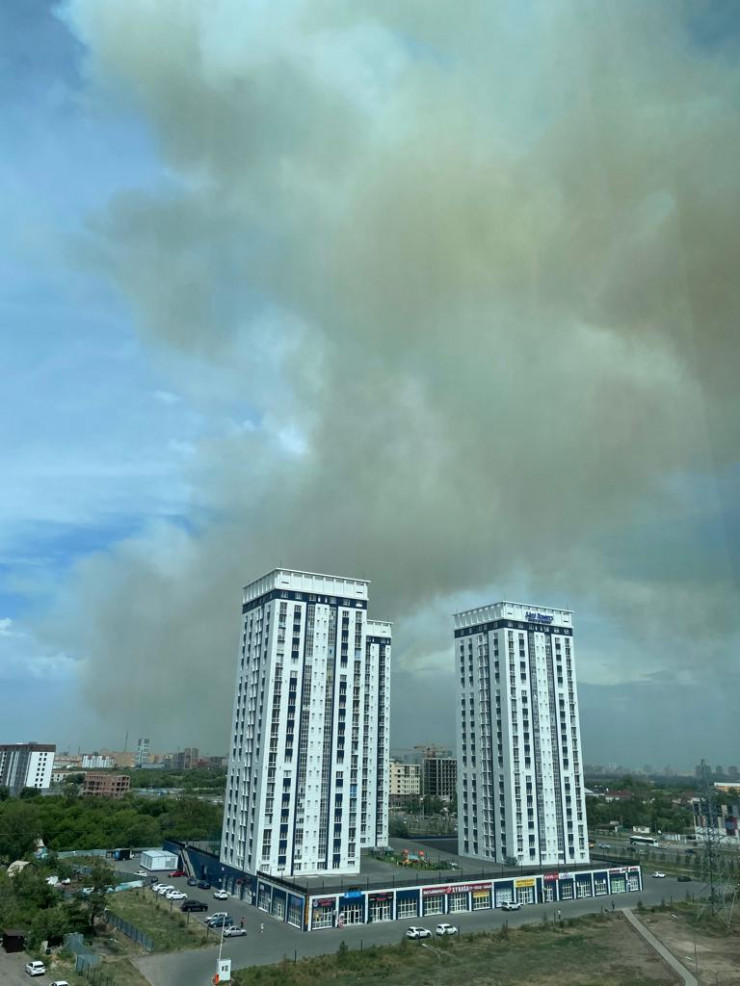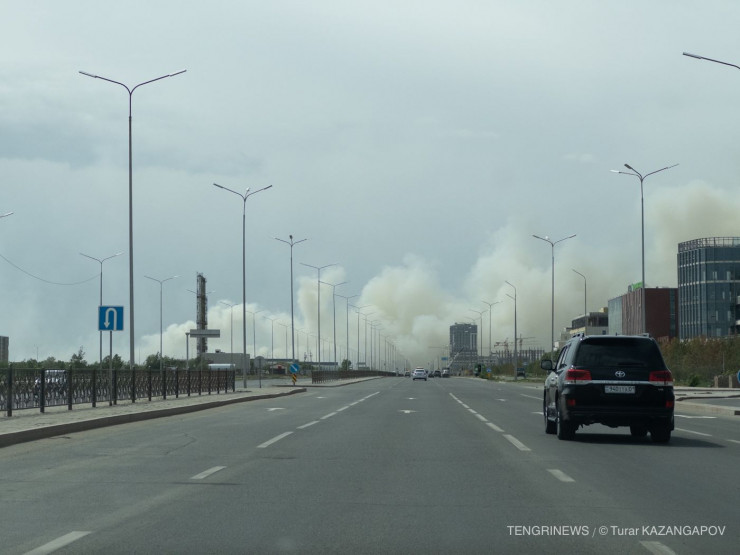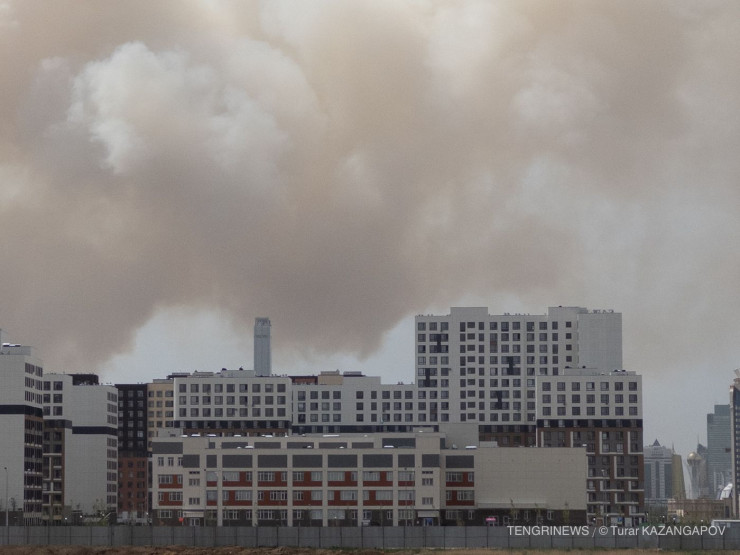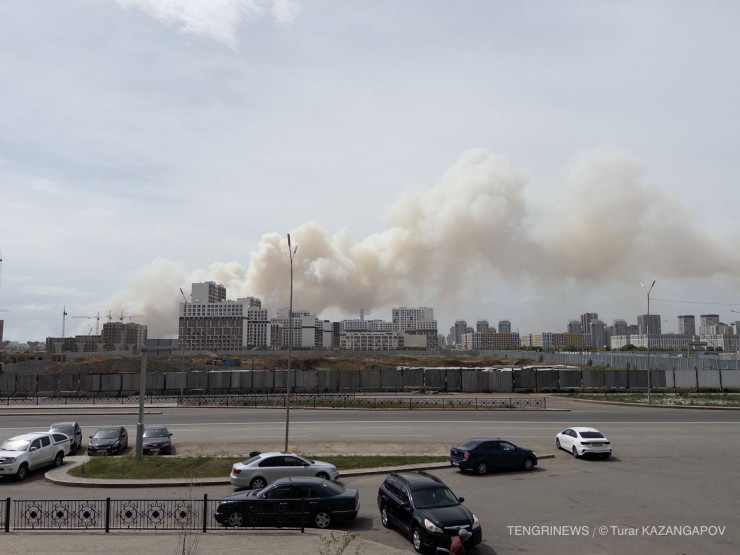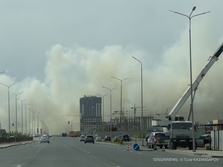 Из-за горения сухостоя небо над столицей затянуло сильным дымом, передает корреспондент Tengrinews.kz.