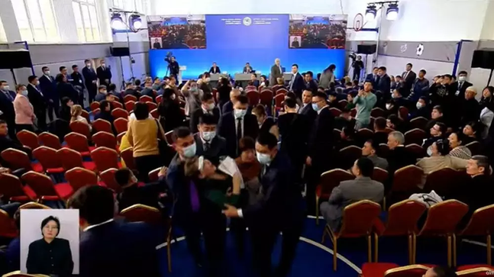 Женщина потеряла сознание на встрече акима Алматы с населением Кадр из видео