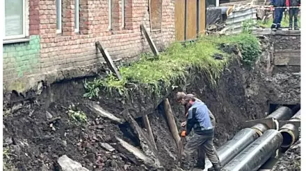 В Риддере обвалилась отмостка фундамента четырехквартирного жилого дома. Как сообщили в информационном центре ВКО, это произошло в месте, где велись земляные работы по замене теплотрассы.