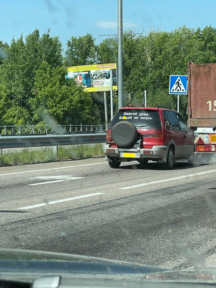 На редакционный WhatsApp-номер обратился читатель, который сообщил о нарушении правил дорожного движения. Он отправил фотографию, на которой запечатлена Mitsubishi RVR с цитатой на заднем лобовом стекле. В тексте одно слово является нецензурным, поэтому автор обращения попросил принять меры к водителю данной машины.