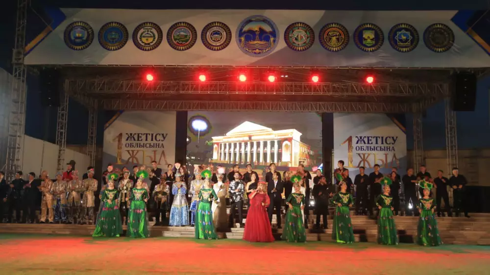 Торжественную часть продолжила яркая концертная программа с участием творческих коллективов региона. К слову, по состоянию на 1 апреля численность населения области Жетысу составила 698,8 тысячи человек, территория области – 118 тысяч квадратных километров. В состав области входят Аксуский, Алакольский, Ескельдинский, Каратальский, Кербулакский, Коксуский, Панфиловский, Сарканский районы, города Талдыкорган и Текели.