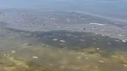 Жители Актау заметили масляные пятна и мусор на поверхности моря Кадр из видео
