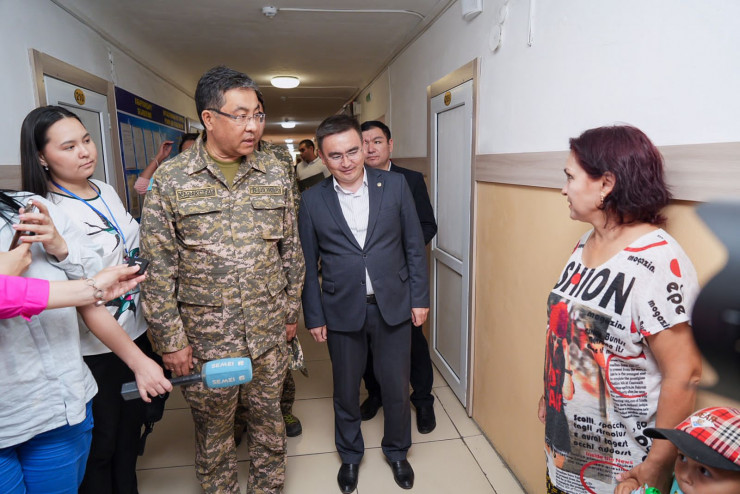 Аким области Абай Нурлан Уранхаев посетил эвакуационные пункты, рассказав сельчанам о текущей ситуации с пожаром.