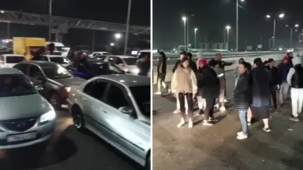Дорогу перекрывали мужчины и женщины, пожилые и дети. Образовались километровые заторы. На одном из видео, опубликованных в соцсетях, можно заметить сотрудника полиции, который призывал собравшихся разойтись и дать водителям проехать.