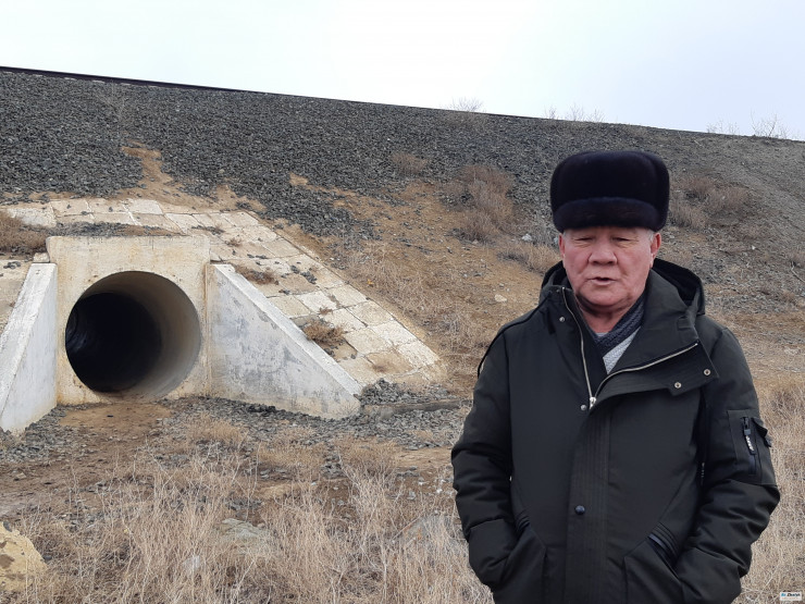 "Мне 80 лет, я давно живу в Бирлике и тоже вынужден пролезать в эту трубу, - говорит аксакал Тургали Дюсенбеков. - Утром и вечером там темно, пользуемся фонариком в мобильном телефоне".