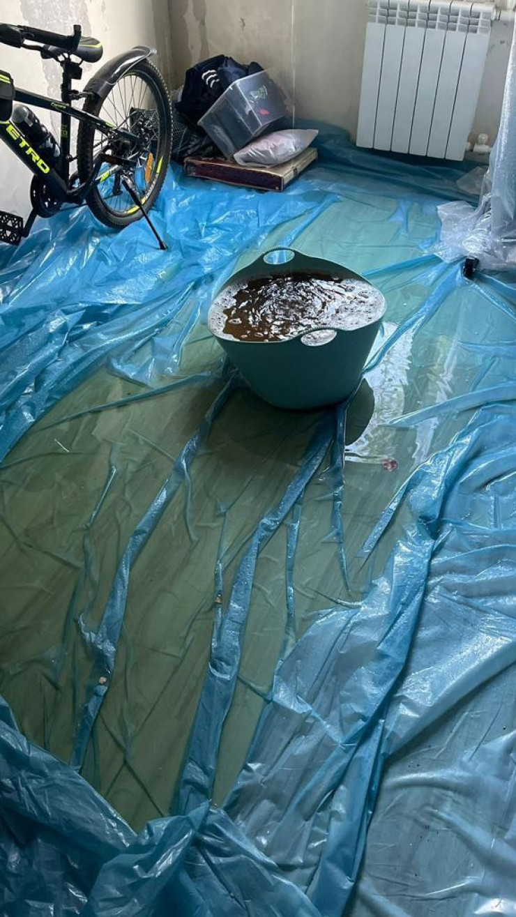 "У нас квартира на пятом этаже. После пожара мы съехали оттуда, потому что жить в ней невозможно. Муж живет у своей мамы, я с детьми - у своей. И так не только мы. Съехали почти все жители четвертого и пятого этажей. Потому что в квартирах сыро, каждый раз во время дождя нас топит. Бежит не только с потолка, но и по стенам. А подрядчики, которые взялись за ремонт, не спешат. К тому же производят ремонт некачественно. Рабочие приезжают и уезжают, когда хотят, по 2-3 человека, а хотят - вообще не приезжают", - говорит карагандинка Карина Собкина.