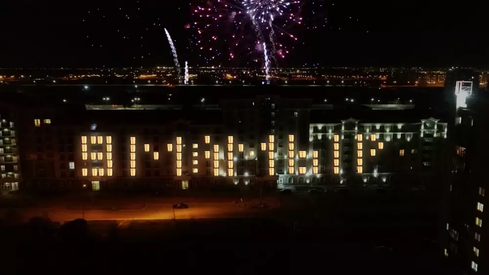 В Нур-Султане жители ЖК "Тарлан" оригинально поздравили с 75-летием Победы в Великой Отечественной войне. Горожане одновременно зажгли свет в определенных квартирах, чтобы из окон получилась надпись "9 мамыр", передает корреспондент Tengrinews.kz.