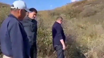 Жители села, где гибнет скот, заставили чиновников пить воду из местного ручья