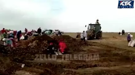 "Бесплатно выкинули в поле, чтобы люди собирали. Никому не нужное. Просто бесплатно начали раздавать. Приехали господа полицейские, пригнали трактор и просто вместе с землей теперь закапывают. И все, чтобы не досталось людям", - сказал он, делая запись.