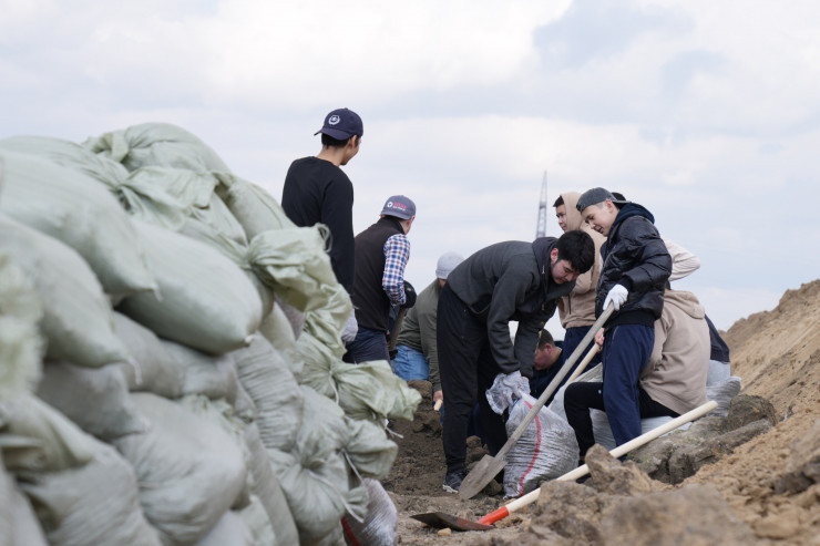 Бұл Атырау шағынауданындағы қазіргі көрініс. Қалада дәл осындай 300-400 адам біріккен 120-ға жуық бригада бар. Олар 3 күннен бері өзен жағасында таңның атысы, кештің батысы мөшектерге құм қаптап, бөгет жасап жатыр.