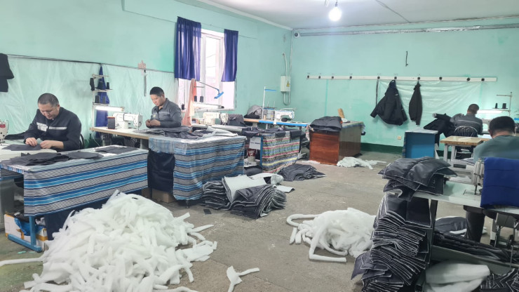 Следующим объектом оказался швейный цех, где работают около 10 осужденных, занимающихся пошивом спецодежды, в том числе для таких же осужденных, как они сами. В основном здесь трудятся мужчины старшего возраста.