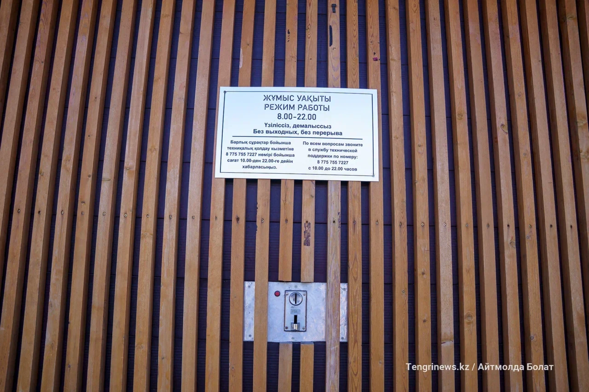 На данный момент работает только один туалет, установленный аппаратом акима Ауэзовского района на северо-западной части туристической зоны.