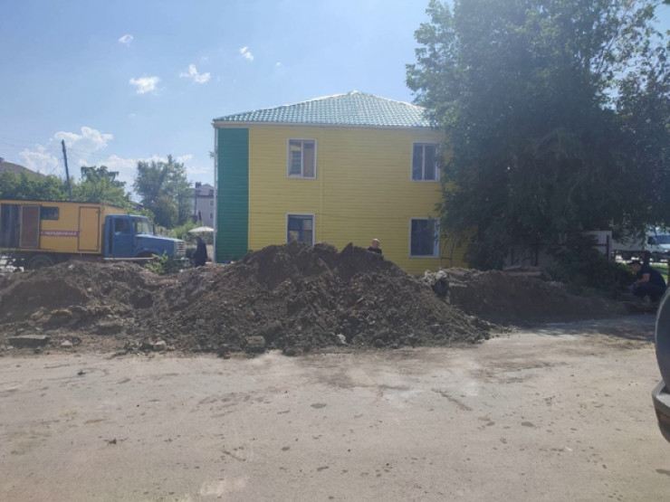 Жуткую находку сделали рядом с домом № 133 по улице Дощанова, недалеко от перекрестка с улицей Мауленова. Рабочие вырыли здесь огромную яму. На место приехали сотрудники полиции.