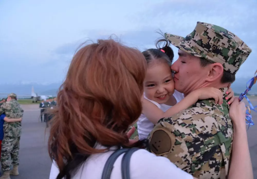 Самолет с казахстанскими пограничниками приземлился в Алматы вечером 8 июня. На площадке аэродрома первую группу офицеров-пограничников встречали не только руководство Пограничной службы, но и сослуживцы, родные и близкие военнослужащих. Вторая группа офицеров убыла в Кабул 6 июня текущего года. Шесть офицеров несли боевое дежурство в течение года.