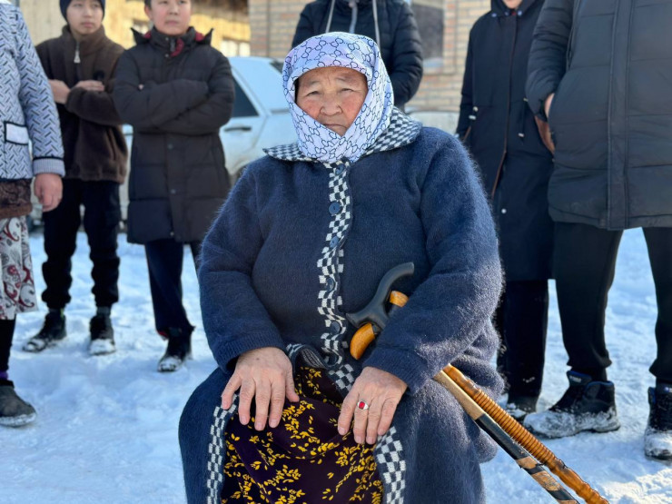 Фото: Massaget.kz \ Жақсылық Зинешов. Ауыл тұрғыны Зәуреш Боранбаева. Жасы жетпіске таяған әже аяғының ауырғанына қарамастан көмір тасып, от жағатынын айтты