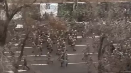 "Вооруженные палками и арматурой террористы убивают военных в центре Алматы. 5 января, 15.40. Видеодоказательство", - сообщил автор видео Жандос Курманбаев.