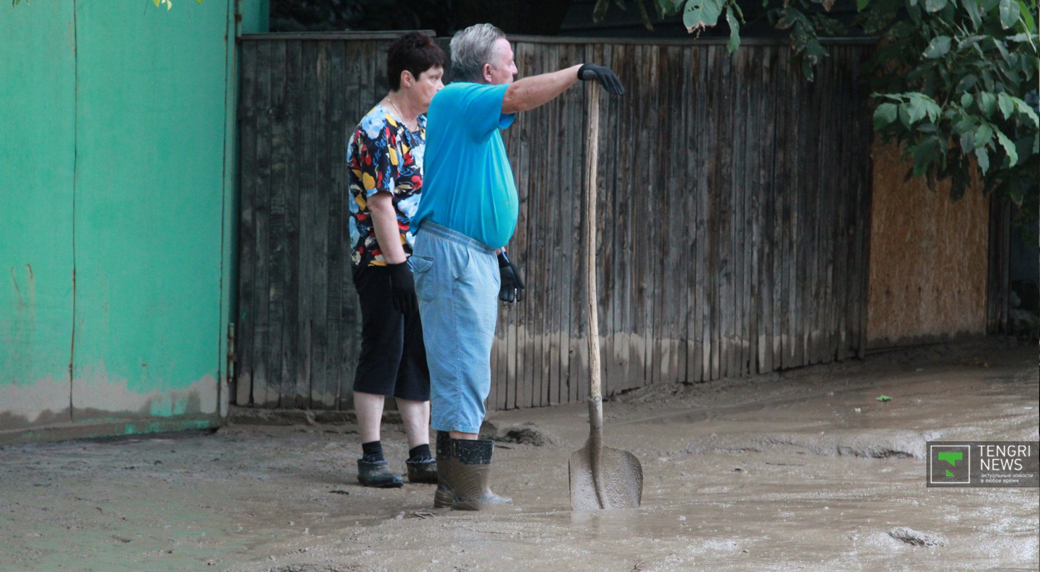 Журналисты Tengrinews.kz подоспели к месту ЧП после рассвета. К тому времени основной поток селя уже спал, и люди начали своими силами восстанавливать порядок. Им помогали подоспевшие на место сотрудники ЧС.