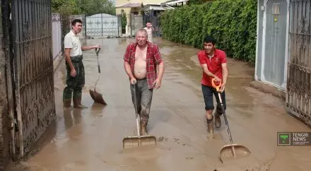 Журналисты Tengrinews.kz подоспели к месту ЧП после рассвета. К тому времени основной поток селя уже спал, и люди начали своими силами восстанавливать порядок. Им помогали подоспевшие на место сотрудники ЧС.