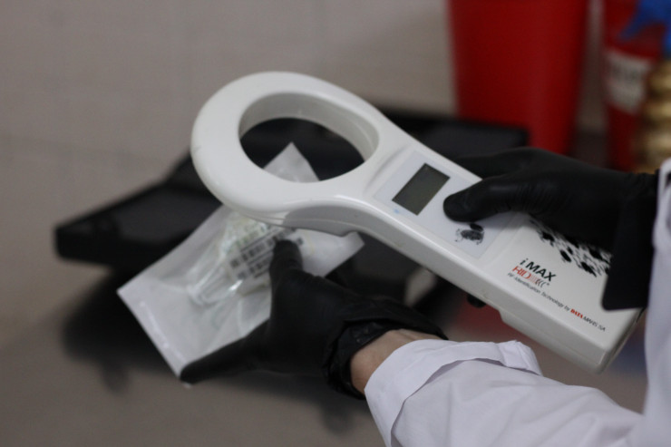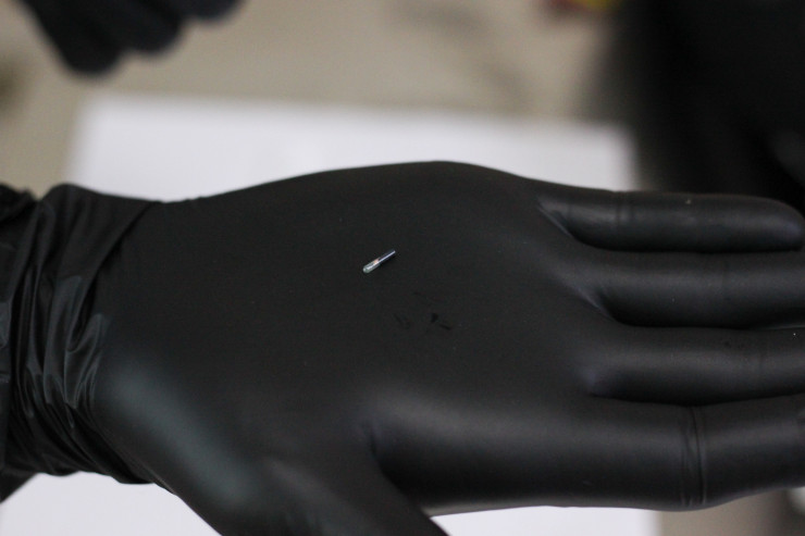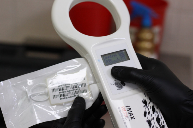 Перед тем как вскрыть микрочип, его проверяют - для этого врач проходит по чипу специальным прибором, который должен отобразить код чипа.