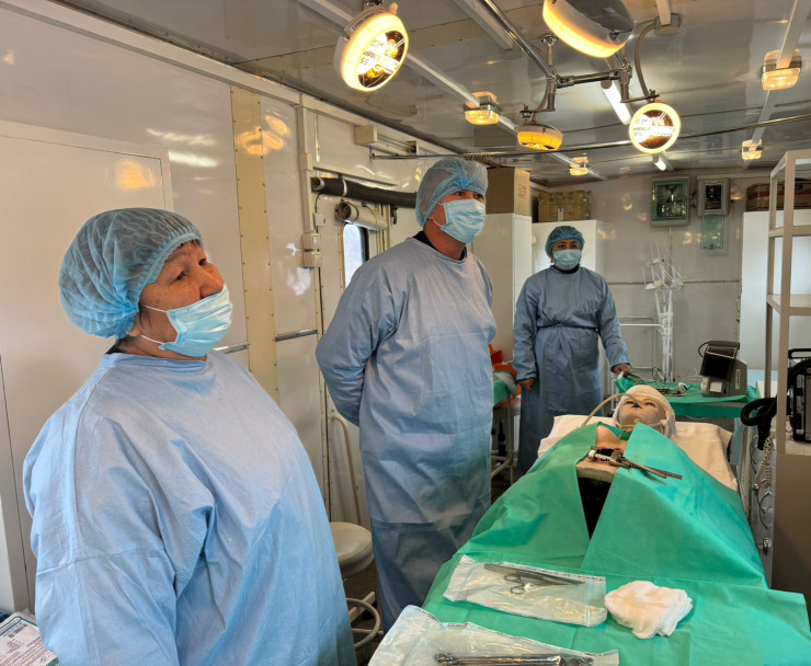 По легенде учений РКШУ "Қыс-2024", в ВКО разбушевалась метель, на одной из дорог в заложниках зимних заносов остался пассажирский автобус с людьми. Спасатели смогли пробиться на помощь сквозь образовавшиеся сугробы только на высокопроходимых вездеходах "Шерп" и эвакуировали граждан, среди которых были пострадавшие. Чтобы оперативно доставить их до ближайшего медучреждения был привлечен вертолет МИ-8 "Казавиаспас". На борту первую помощь оказывали врачи Центра медицины катастроф.