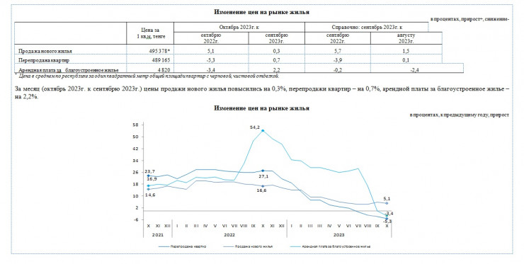 В Бюро национальной статистики опубликовали данные об изменениях цен на жилье и аренду в октябре, передает корреспондент Tengrinews.kz.