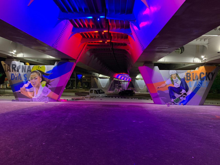Одно из таких мест появилось под мостом возле Евразийского национального университета имени Гумилева. Здесь появились граффити с портретами знаменитых спортсменов, в их числе боксер Геннадий Головкин, теннисистка Зарина Дияс, американский баскетболист Леброн Джеймс. Также есть граффити советского баскетболиста Алжана Жармухамедова.