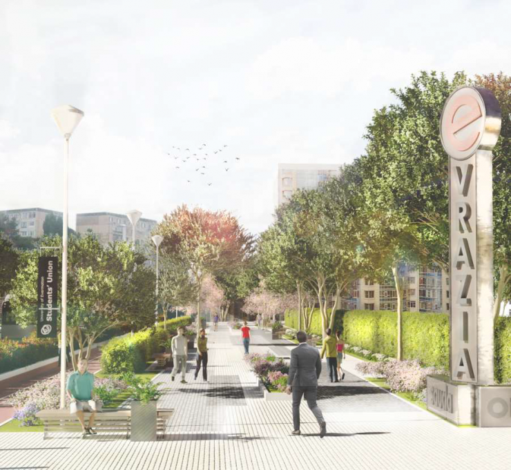 В планах администрации города создать комфортную зону в районе торгового центра "Евразия". Есть несколько эскизов, как этот оживленный район будет изменен.