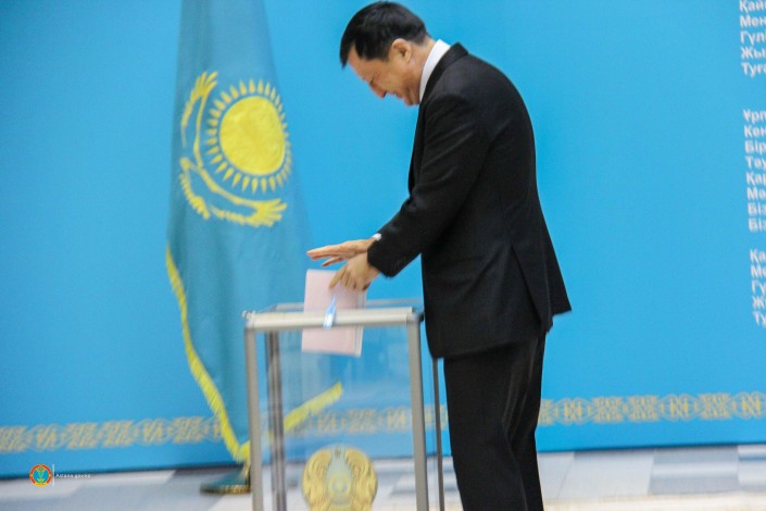 Аким Астаны Адильбек Джаксыбеков также отдал свой голос на выборах.