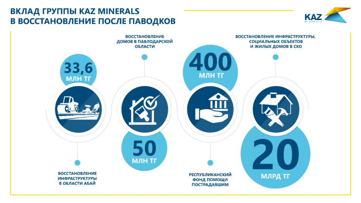 Компании горнометаллургического комплекса одними из первых откликнулись на призыв о помощи. Промышленные предприятия оказывают техническую, инженерную и финансовую поддержку не только в регионах присутствия, но и в масштабе страны на фоне беспрецедентных паводков. Как распределилась помощь Группы KAZ Minerals, можно рассмотреть в нижеприведенной инфографике.