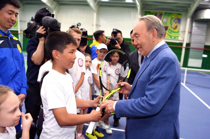 Нурсултан Назарбаев во время посещения теннисного центра "Эйс" в Алматы / фото akorda.kz