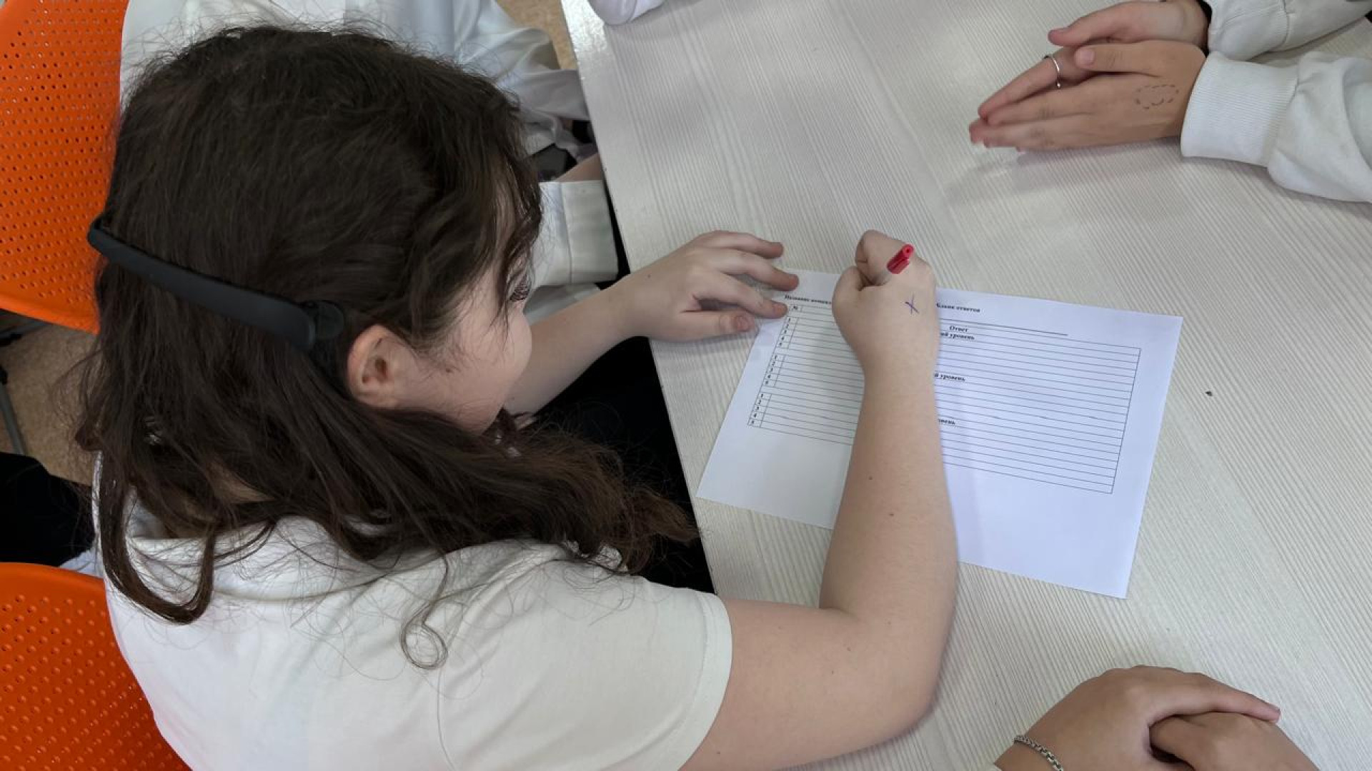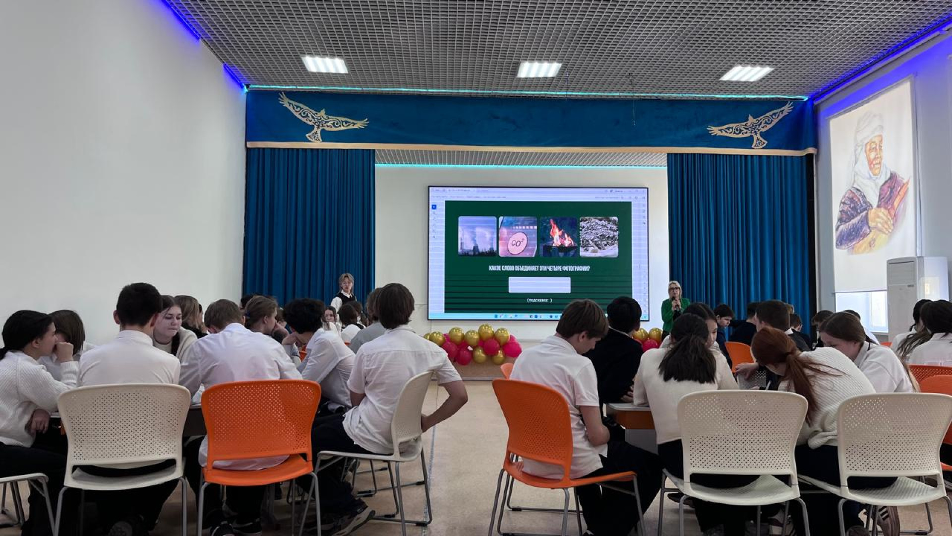 "Сегодня мы провели мероприятие для восьмиклассников, которое объединяет волонтёрство, экологию и творческое развитие. Дети выполняли задания, создавали мини-проекты, снимали видеоролики, а также работали с экологическими изображениями: им давали картинки, по которым они писали слова-ассоциации", — рассказала менеджер штаба.