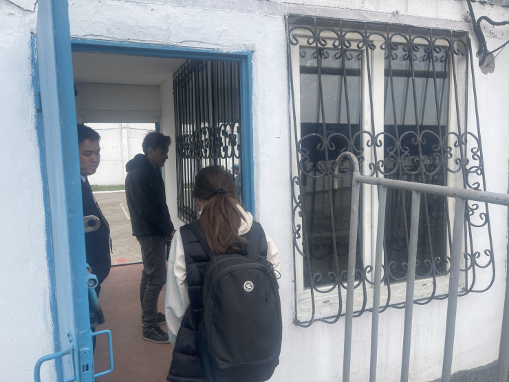 Они проходят в этом двухэтажном сооружении. Каждое окно здесь защищено железной решеткой.