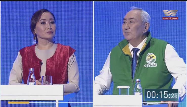 Cтоит отметить, что оба кандидата отличились от остальных участников теледебатов внешним видом. Каракат Абден пришла в студию в национальном костюме. А Жигули Дайрабаев надел безрукавку с логотипом партии, которую он представляет.