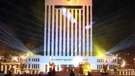Вечер украсило захватывающее лазерное шоу. Световые технологии и искусство объединились, чтобы создать уникальный спектакль: лучи, танцующие на фасаде здания акимата, рассказывали о достижениях и истории города. Южный мегаполис стал первым в стране, где прошло подобное мероприятие.