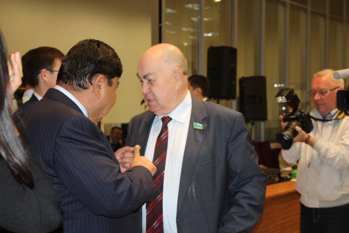 Депутат Сената Парламента Куаныш Айтаханов, главный редактор журнала "Жалын" Мухтар Шаханов, общественный деятель, академик Национальной академии наук Мырзатай Жолдасбеков.