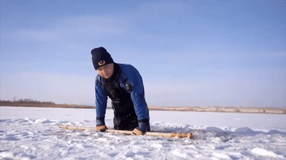 - для выхода на лед менее 25 сантиметров у вас должен быть спасательный жилет, свисток, также палка длиной 2 метра или веревка длиной 12 метров, которые помогут спасти тонущего;