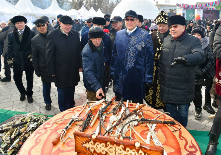 Глава региона зашел в юрты, которые были посвящены казахскому языку и народному искусству. На мастер-классе дети с особыми потребностями показали свое творчество. Гости праздника посмотрели быт казахского народа в этноауле, который был организован кандасами, прибывшими из других регионов и стран. Праздничный концерт и спортивные игры стали украшением Наурыза.