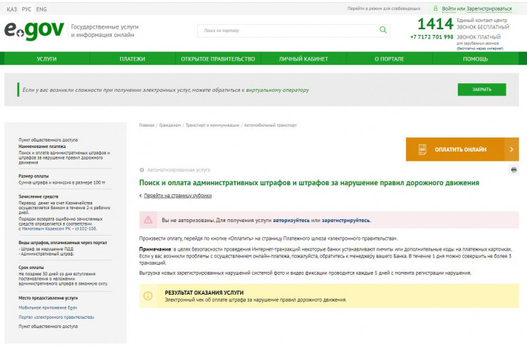 Автомобилист будет направлен на страницу платежного шлюза электронного правительства, где, соответственно, можно заплатить за нарушение.