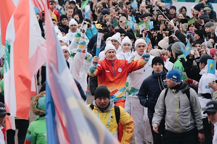 Всего в официальной части эстафеты приняли участие 100 факелоносцев, которые были представлены спортсменами, деятелями культуры, артистами, и другими людьми, которые внесли свой вклад в развитие страны и города. Один из них - директор ТОО Effective Media Liaison, куда входят Vesti.kz, Tengrinews.kz и Massaget.kz, Сункар Карабалин, пробежавший 71-й этап.