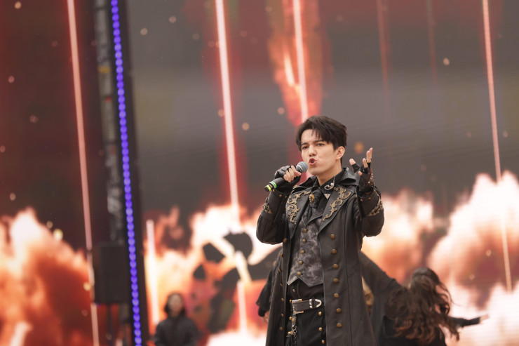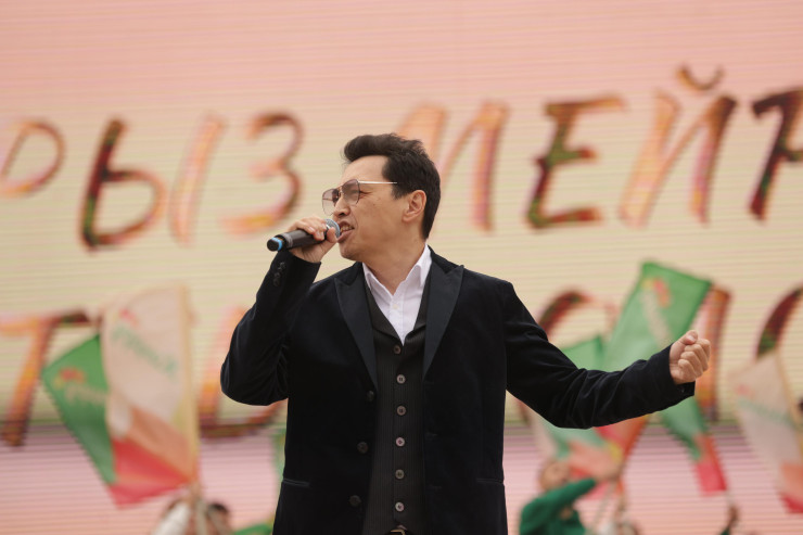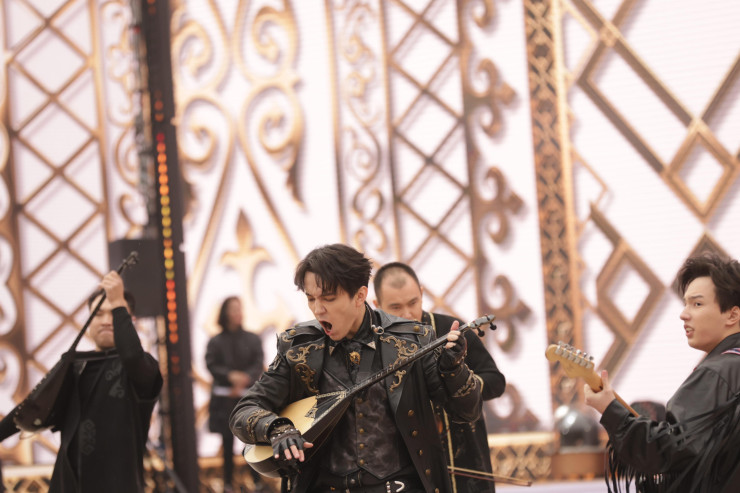 Сразу после Президента на сцену неожиданно с зажигательным номером вышел любимец казахстанцев Димаш Кудайберген. Он исполнил кюй "Адай", а также, подыгрывая себе на домбре, песни "Дүрдараз" и Stranger на английском языке.