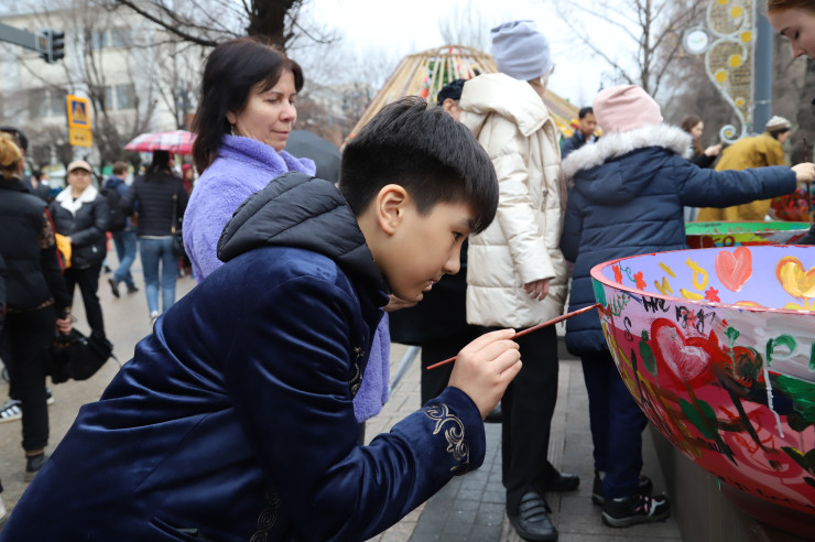 На популярных пешеходных улицах Панфилова и Жибек Жолы также было людно. Арт-инсталляции в национальном стиле, юрты, артисты в костюмах, модель юрты, а также отличные фотозоны, привлекли множество горожан, несмотря на пасмурную погоду.