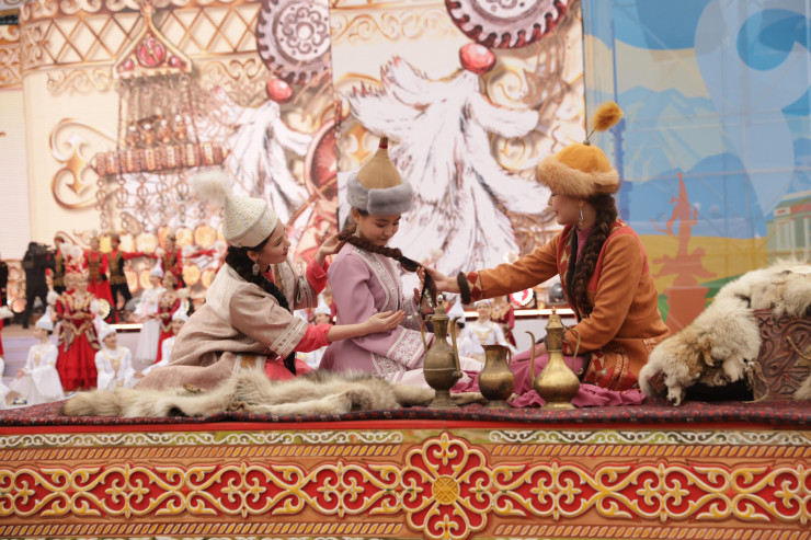 В шествии по главным улицам "южной столицы" участвовали конструкции в виде юрты на колесах, куйме невесты, верблюды, груженные шелком, парчой, коврами, а также символы семи сокровищ казахского народа – "Жеті қазына" напоминали о глубоких корнях культуры и традиций казахского народа.