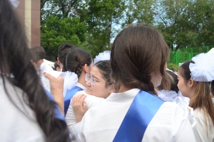 После окончания официоза выпускников 11-х и особенно 9-х классов захлестнули эмоции, ведь многие в этот день прощаются со своими одноклассниками и учителями. Многие, прощаясь, не сдержали слез.