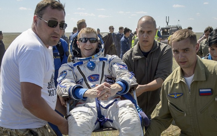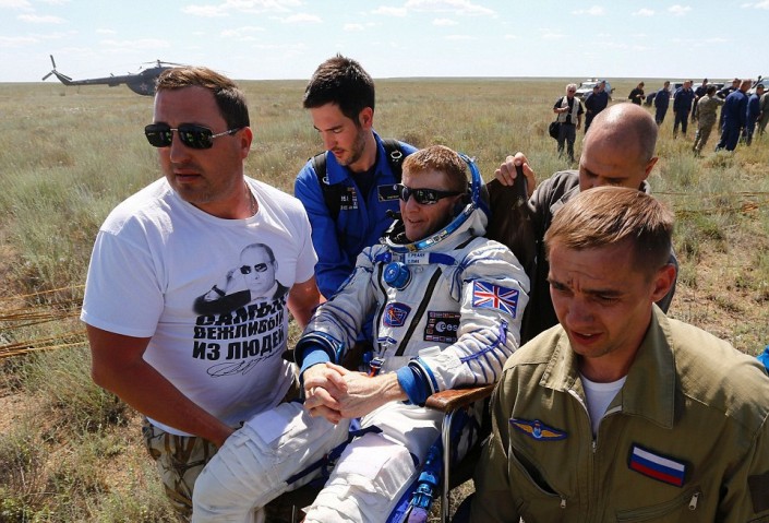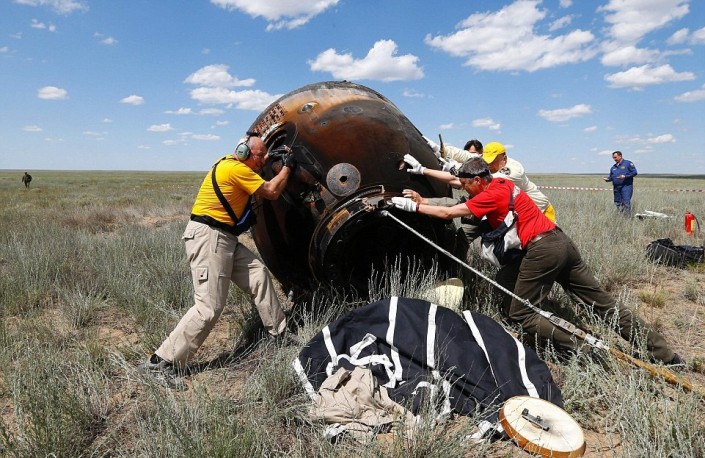 В субботу, 18 июня, в казахстанской степи в 147 километрах от Жезказгана успешно приземлился спускаемый аппарат корабля "Союз". Из космоса вернулись россиянин Юрий Маленченко, американец Тимоти Копра и англичанин Тимоти Пик, сообщает телеканал МИР.