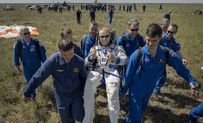 Космическая экспедиция длилась 187 суток. За это время космонавты облетели Землю почти три тысячи раз, приняли участие в 250 экспериментах в открытом космосе и даже пробежали марафон на беговой дорожке.