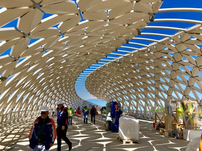 "На неделе уже дадим возможность курсировать прогулочным теплоходам по Ишиму под этим красивым пешеходным мостом. Конструкция длиной 300 метров, 2 000 тонн металла, состоящая из 2 450 лепестков, которые ни разу не повторяются! Скоро испытания", - подписал фотоснимки Айдын Рахимбаев.