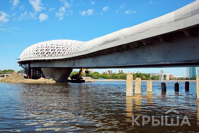 Ранее сообщалось, что длина моста составит 313,5 метра, ширина - 10,5 метра, он включает шестиметровую пешеходную полосу, трехметровую велодорожку, полосу безопасности шириной полметра и две полосы по полметра для устройства перильного ограждения", - сообщили в управлении автомобильных дорог Астаны.