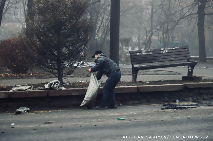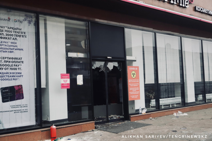 Фотокорреспондент Tengrinews.kz побывал в районе площади Республики, акимата Алматы и резиденции Президента на следующий день после погромов.