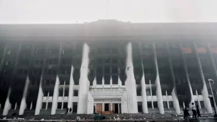 По словам корреспондента, здание городского акимата Алматы 6 января продолжало дымиться и гореть.